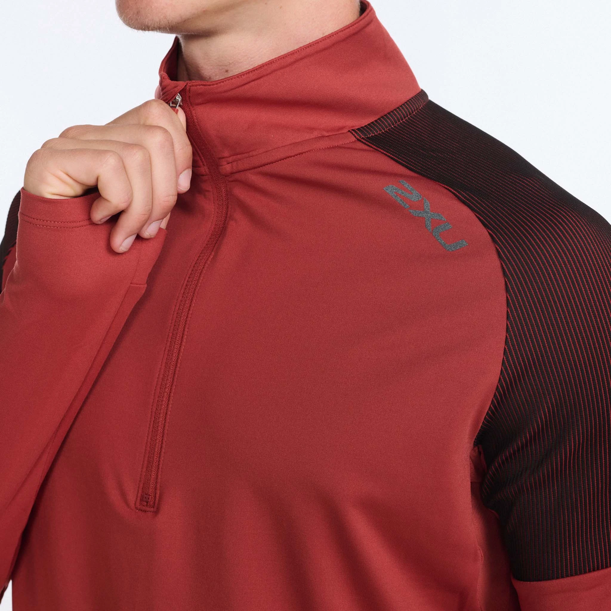 Versatile for both warm and cool weather running, the 2XU Light Speed ½ Zip in the Chilli Oil/Black Reflective colourway is the perfect mid layer. This long sleeve running top is made with lightweight, sweat wicking fabric that stops you from overheating and keeps you covered in cool conditions. The stand up collar will protect from wind and can be easily unzipped for quick ventilation.