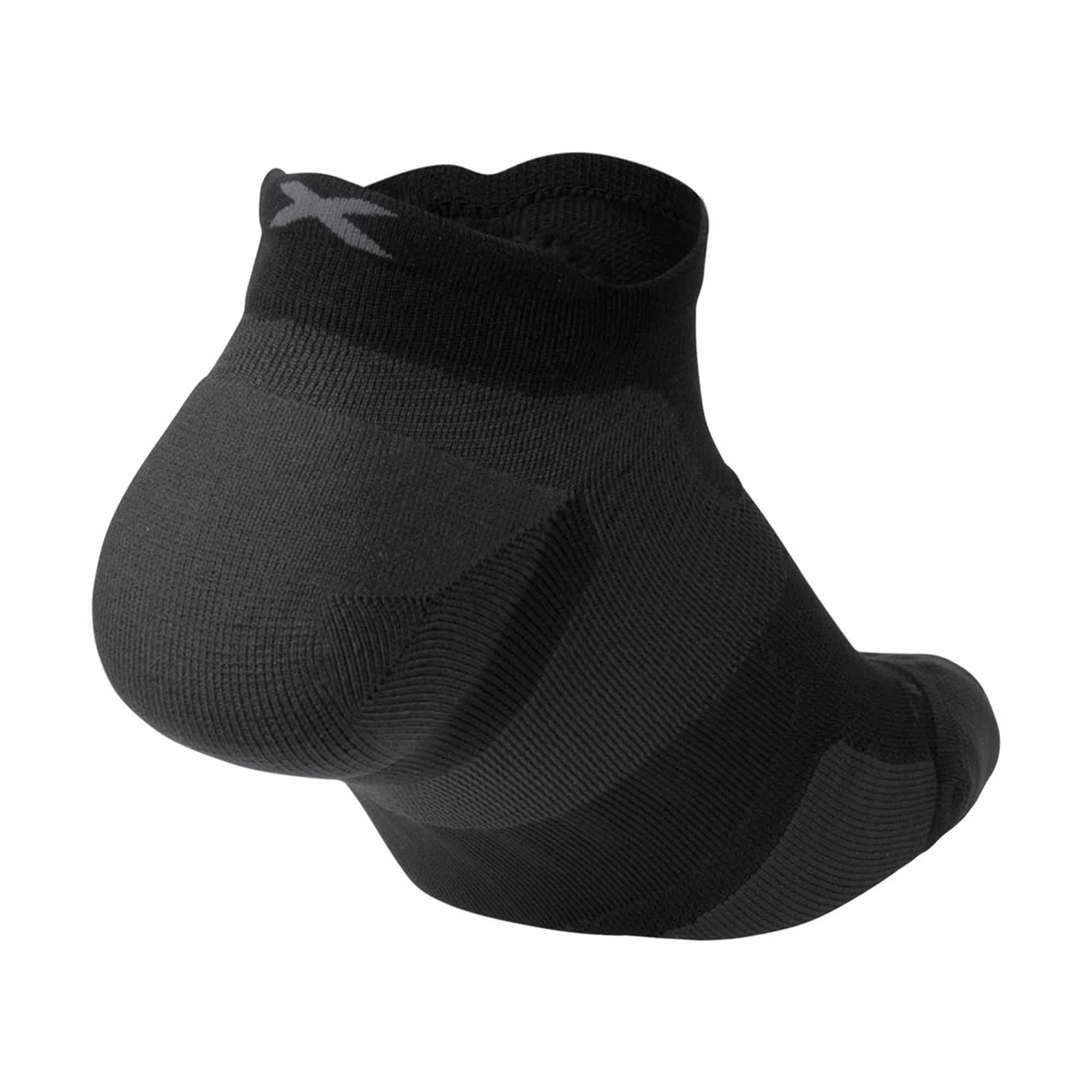 The VECTR CUSHION No Show Sock by 2XU is anatomically designed to provide advanced plantar fascia and arch support. X-LOCK technology locks the foot in place with the sock to reduce blistering. This sock features 3.25mm cushioning, making it ideal for a wide variety of activities. The cushioning also helps to hide irregularities in footwear that could cause discomfort.