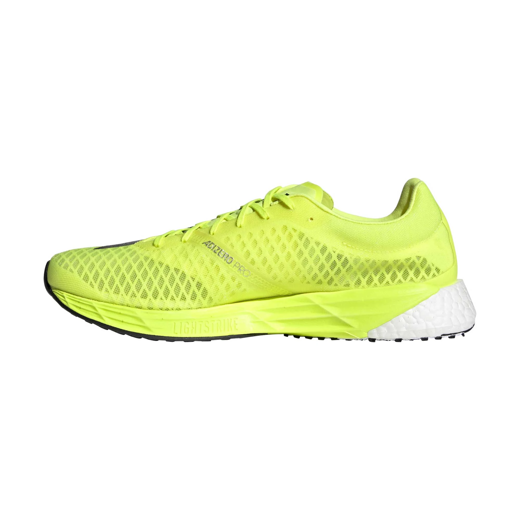 Advice for Road Runners: The Adizero PRO delivers carbon fibre plated power in a lightweight and responsive package. Designed in collaboration with elite adidas athletes, this racing shoe brings the highest level of performance benefits in a more traditional style than higher-stacked carbon fibre plated alternatives.