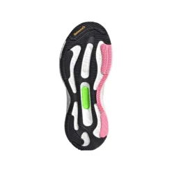 The zoned mesh upper incorporates Parley Ocean Plastic and offers excellent breathability and a secure, locked-down fit. This women’s version has less volume in the forefoot to offer a more secure fit in this area. This is enhanced by the inclusion of a strengthened eye-stay on the medial side of the shoe which works with the TPU wrap to secure the foot further. The heel counter is slightly narrower than in the men’s version to accommodate the female foot better and is designed to reduce friction in the Achilles area.