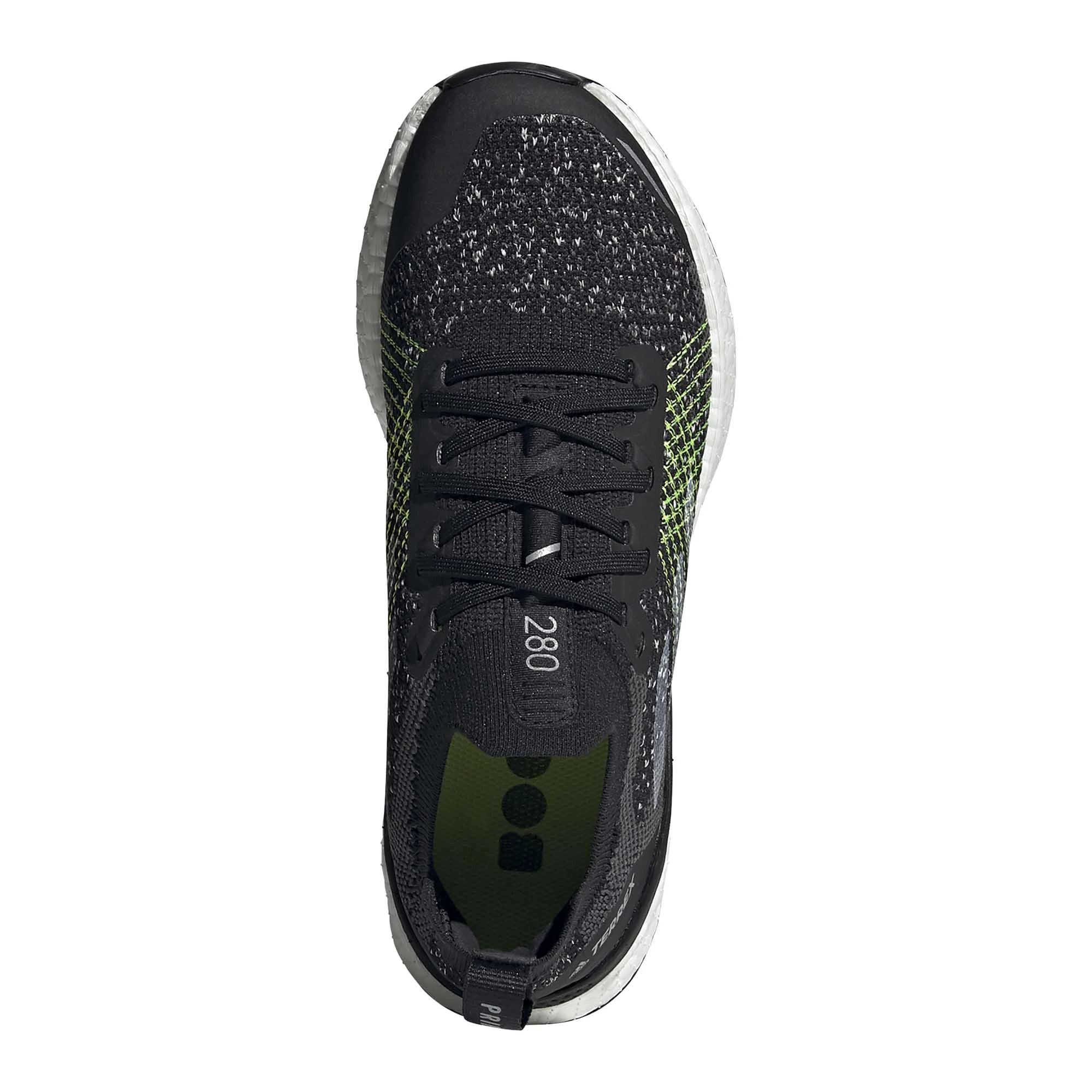 The durable rubber outsole is inspired by bike tires and excels on wet and loose surfaces. The sticky Continental rubber and lug pattern offers superb traction on a wide variety of terrain. The sustainable upper is made using entirely Primeblue recycled polyester. This material is developed from up-cycled plastic waste, collected from Oceans and coastal areas. The flexible Primeknit textile has a sock like fit which adapts to the foot and accommodates for foot swelling on long runs.