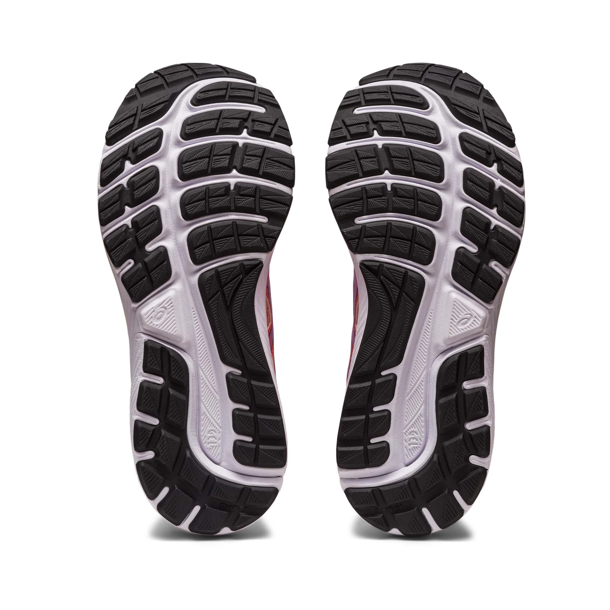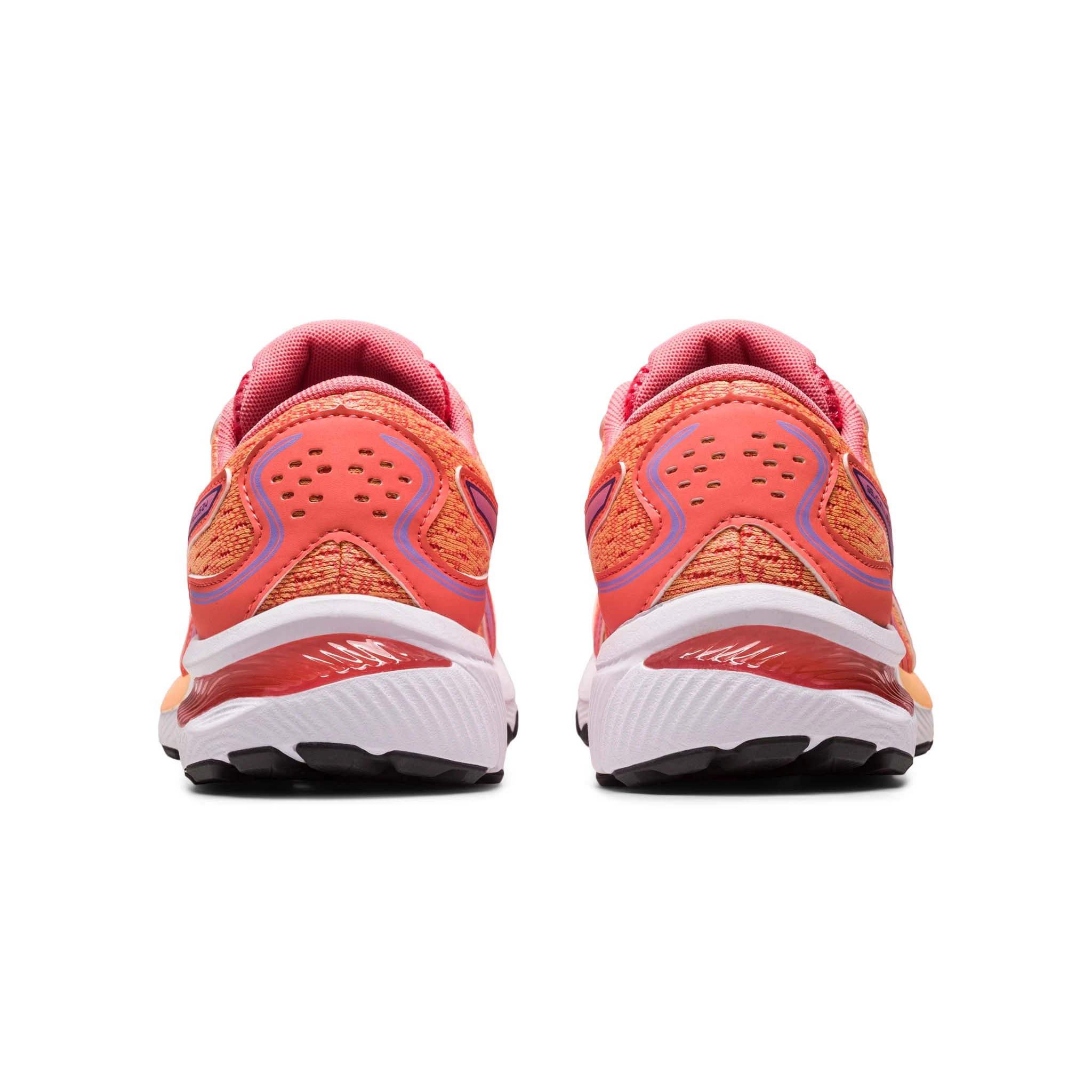 The unisex Asics Kids’ Gel-Cumulus 24 GS Running Shoes in the Papaya/Dusty Purple colourway are cushioned, neutral running shoes.