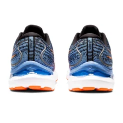 Advice for Road Runners: The men’s Asics Gel-Cumulus 24 in the Black/Shocking Orange colourway offers a more cushioned feel than previous versions while also benefiting from an improved upper design.