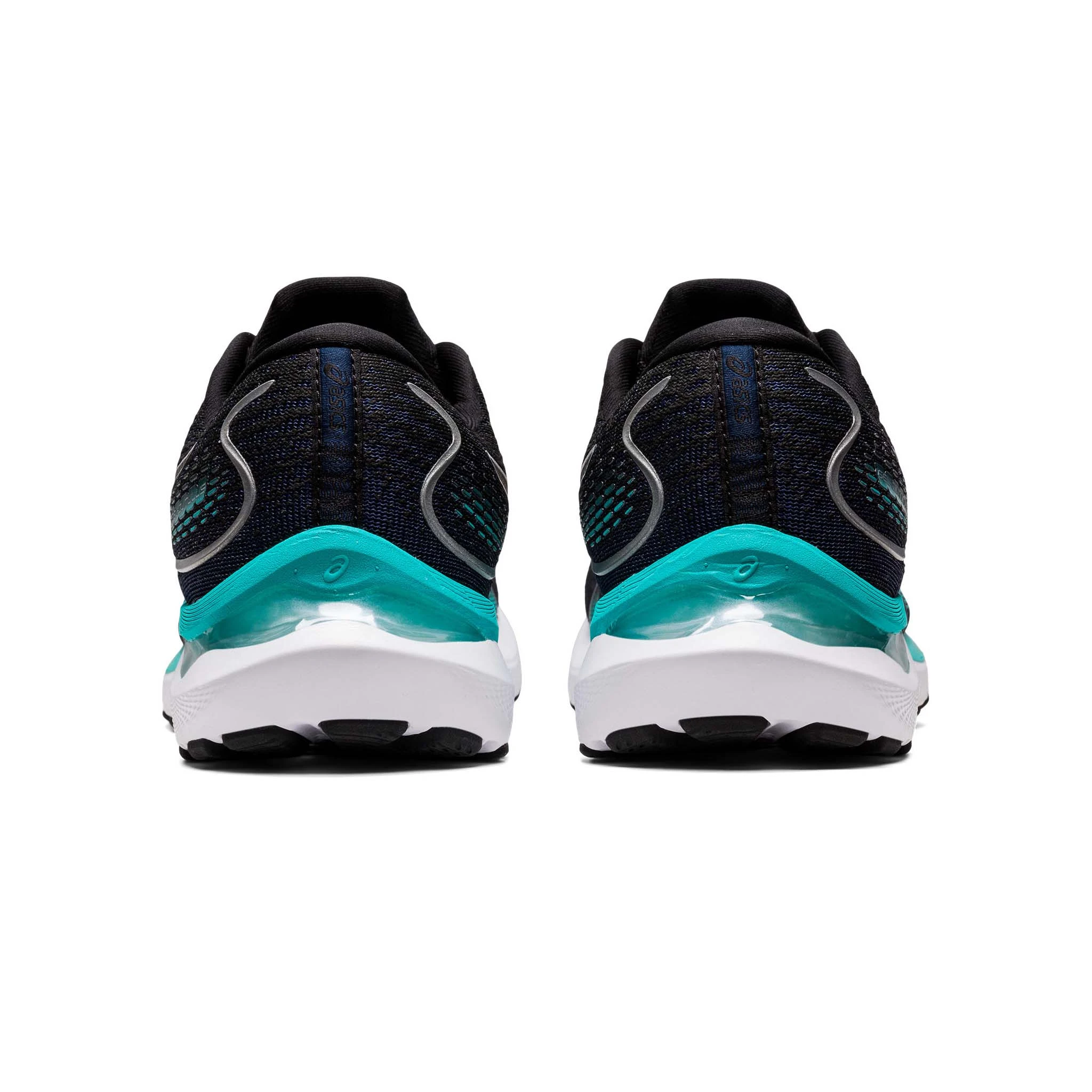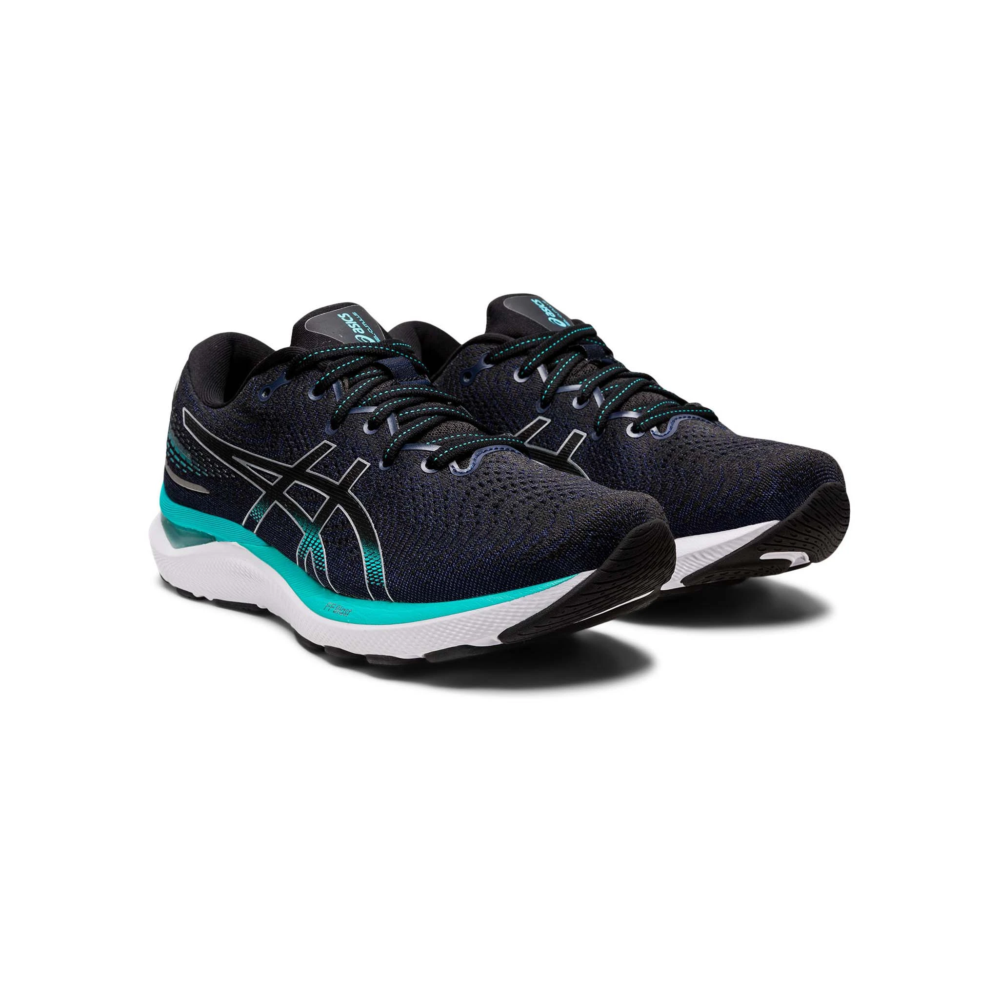 Advice for Road Runners: The women’s Asics Gel-Cumulus 24 in the understated Black/Pure Silver Blue/Soft Sky colourway provides a softened feel from the Cumulus 23 and also benefits from an improved upper construction.