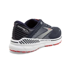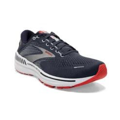 Advice for Road Runners: The new Adrenaline GTS 22 2E from Brooks in Peacoat/India Ink/Grenadine offers a wider fit and support through the GuideRails Holistic Support System. This system effectively shifts the focus beyond the feet and onto the knees and is designed to keep you moving comfortably by minimising excess movement. You can forget about distractions and concentrate on improving your run! A new DNA LOFT midsole provides even softer cushioning than before without losing responsiveness and durability. Transition from heel to toe-off is smoothed by the combination of the softer one-piece midsole and a Segmented Crash Pad.