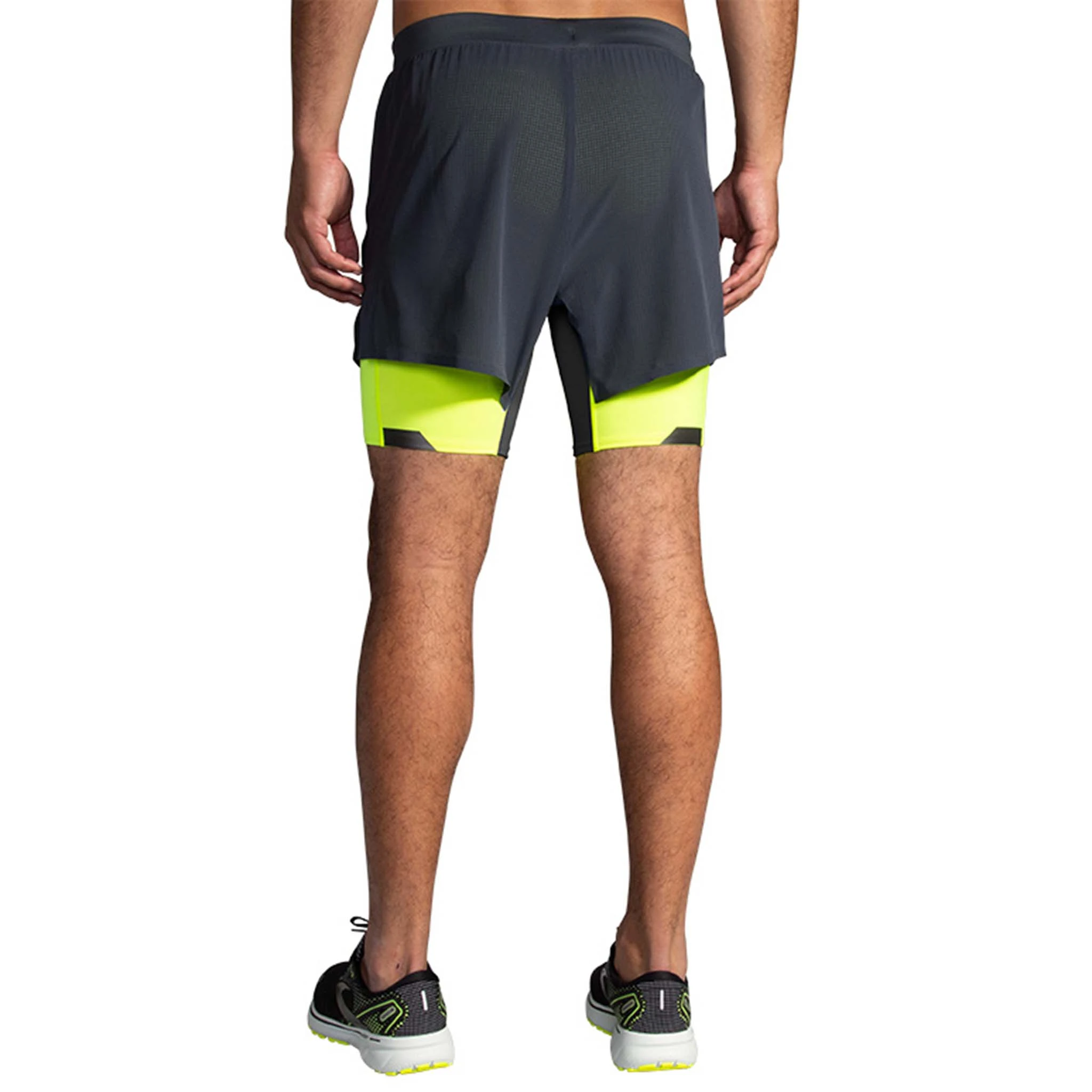 The Brooks Run Visible 5” 2in1 Short in the Asphalt/Nightlife colourway is packed full of reflective features for staying seen in the dark. A zip secure and a pouch pocket, one on each leg provide secure storage for mobile devices or other essentials.
