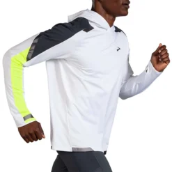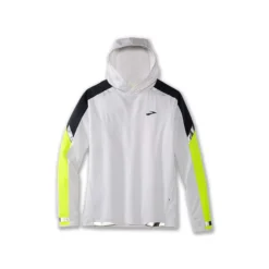 The Brooks Run Visible Thermal Hoodie in the White/Asphalt/Nightlife colourway allows you to be seen by drivers from up to 180m away. Made using 94% recycled materials this sustainable hoodie benefits both you and the environment. At the hemline a zip secure pocket has been added that can carry any everyday items.