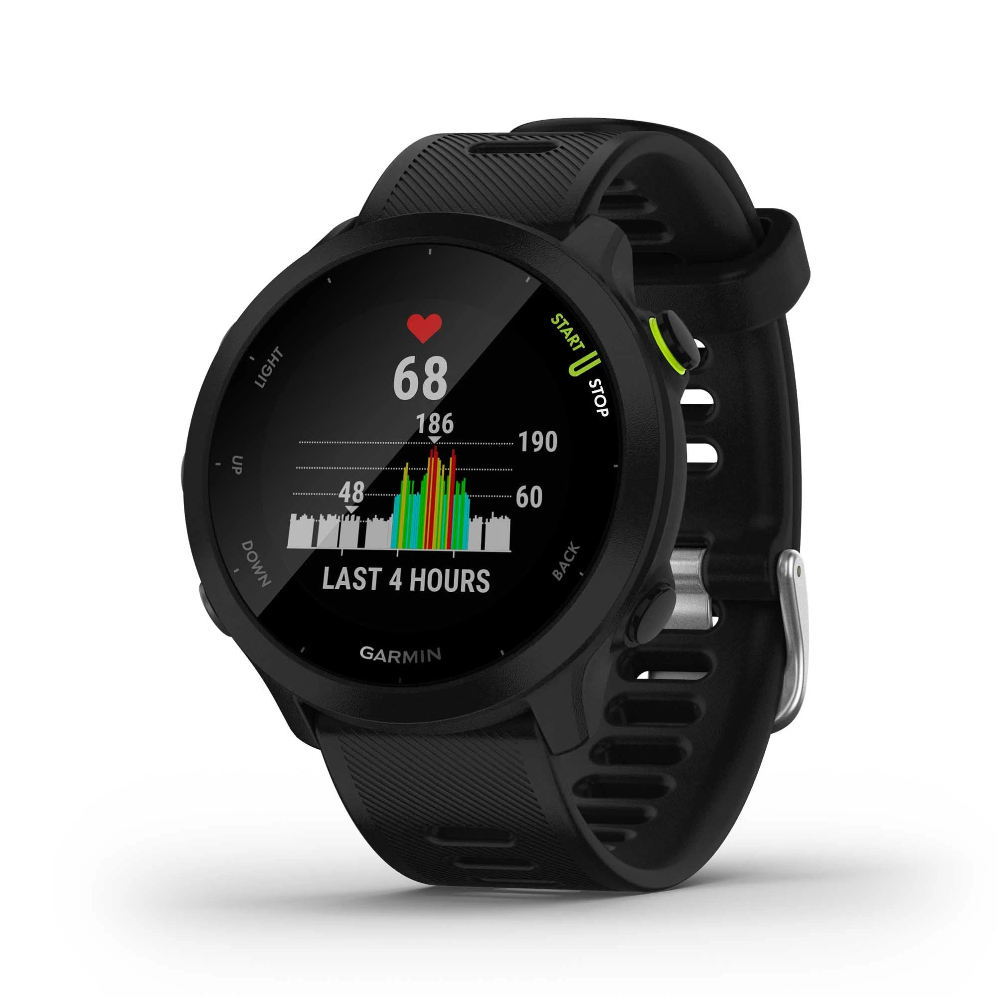 Perfect for new and experienced runners alike, the Garmin Forerunner® 55 is an easy-to-use GPS running smartwatch, designed to enhance your running and active lifestyle. Straight forward to set up and go, simply start your run or walk with the press of a button and track your time, distance, speed, pace and heart rate* direct from your wrist.
