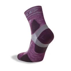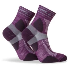 The Hilly Trail Anklet Running Socks in the Blackberry/Grey colourway feature a mixed yarn of merino wool and polyamide for exceptionally high levels of moisture wicking and durability. A reinforced toe box has even been included with downhill descents in mind.