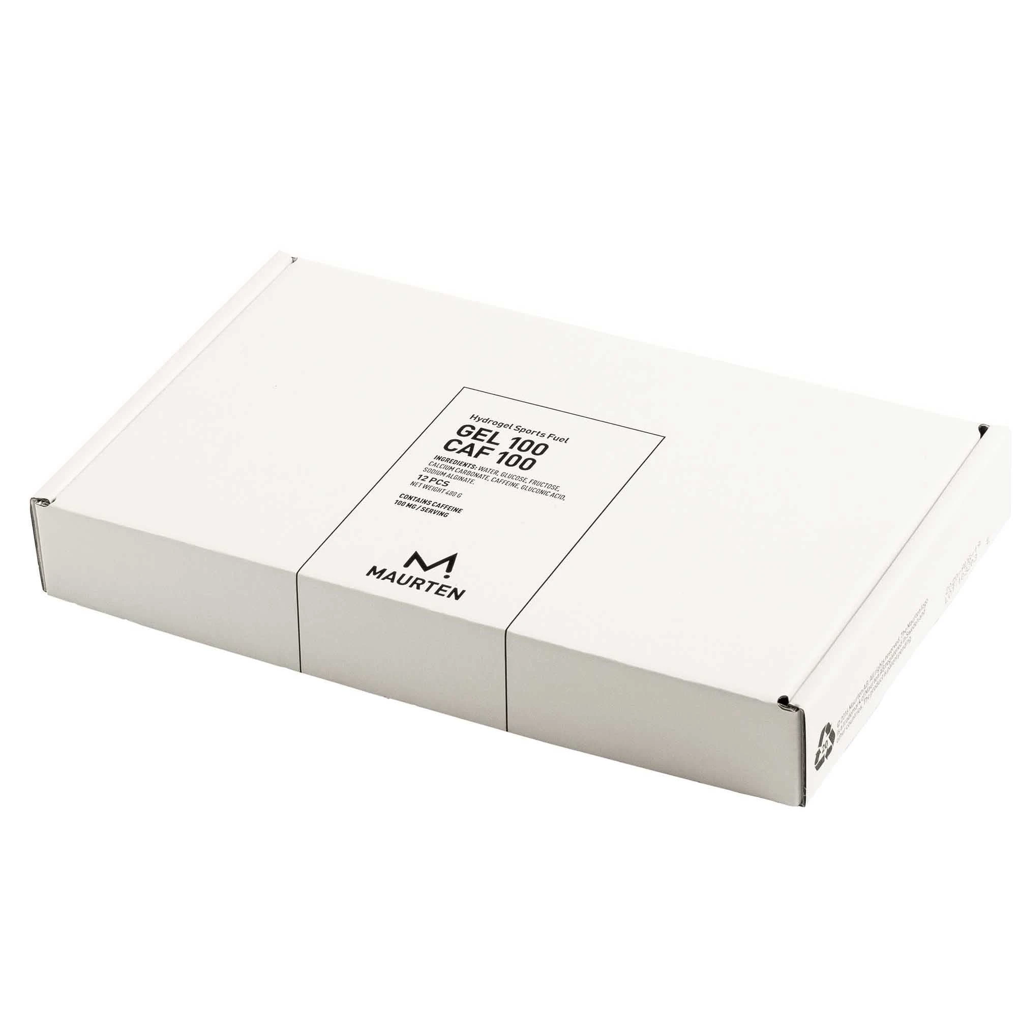 This box contains 12 servings of Maurten GEL 100 CAF 100.