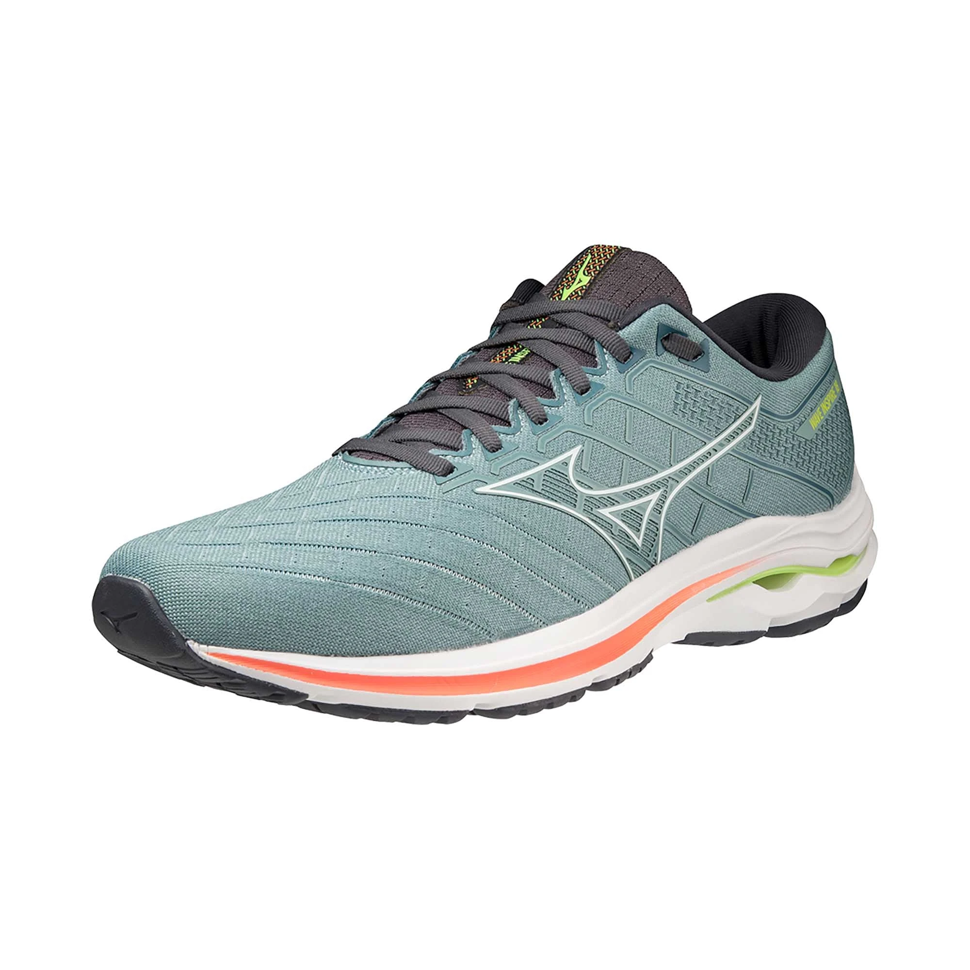 Advice for Road Runners: The new Mizuno Wave Inspire 18 in the Smoke Blue/White/Neon Flame colourway is ideal for distance runners looking for a stability shoe that offers cushioning and shock impact as well as superb levels of energy return.