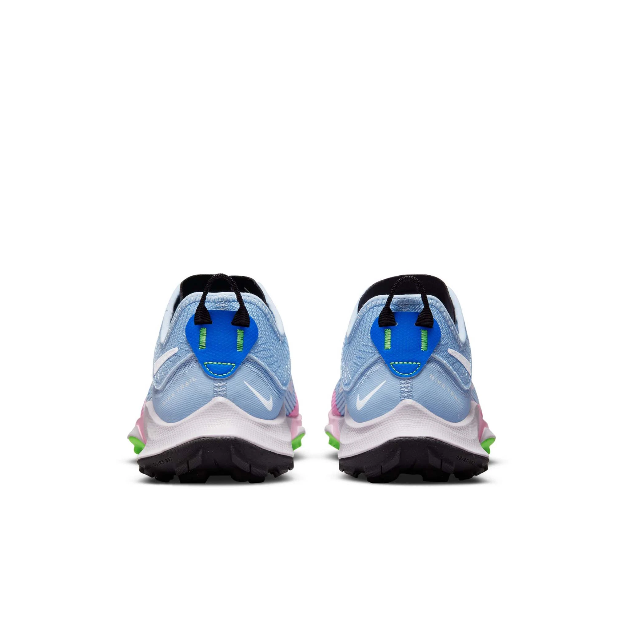 Advice for Trail Runners: The Nike Air Zoom Terra Kiger 8 in the LIght Marine/White/Hyper Royal/Black colourway lets you tackle tough terrain in light stability. It features Nike React foam, a lightweight and durable foam that gives a responsive ride. The Zoom Air Unit in the forefoot provides added responsiveness to this shoe. The multi-directional lugs on the Air Zoom Terra Kiger 8 are made from a high-abrasion rubber. The lugs help to provide an enhanced grip on descents and ascents.