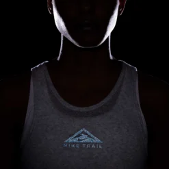 Keep cool on your off road runs in the Nike City Sleek Trail Tank. This ultra-breathable running vest is made from lightweight Nike Breathe fabric. The quick drying material is soft against skin and wicks away moisture, keeping you comfortable for the long run. The sleek cut features a reflective Nike Trail logo across the front for visibility in low light.