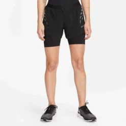 The Nike Dri-Fit Run Division 2in1 Short in the Black/Black/Black colourway provides an adjustable high stretch fit. A supportive inner short has been combined with a breathable outer short featuring rainbow reflective detailing. The zip secure pocket included at the rear is large enough to carry most phones. Dri-Fit moisture wicking technology has been used to keep you cool and dry.
