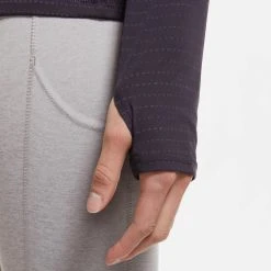The relaxed fit is enhanced with flat seams and a high neck helps to keep the heat in. A curved back hem provides a stylish cut and gives extended coverage over the waist. Thumbhole loops are a great detail for cold days, stopping sleeves from riding up as you run. The bungee cord at the upper back helps secure the top when it’s packed away for easy storage.