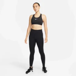 Stay supported throughout your run with the Nike Dri-FIT Swoosh High-Support Non-Padded Adjustable Sports Bra in the Black/Black/DK Smoke Grey/White colourway, wide straps and a racerback design ensure you stay comfortable no matter the activity.
