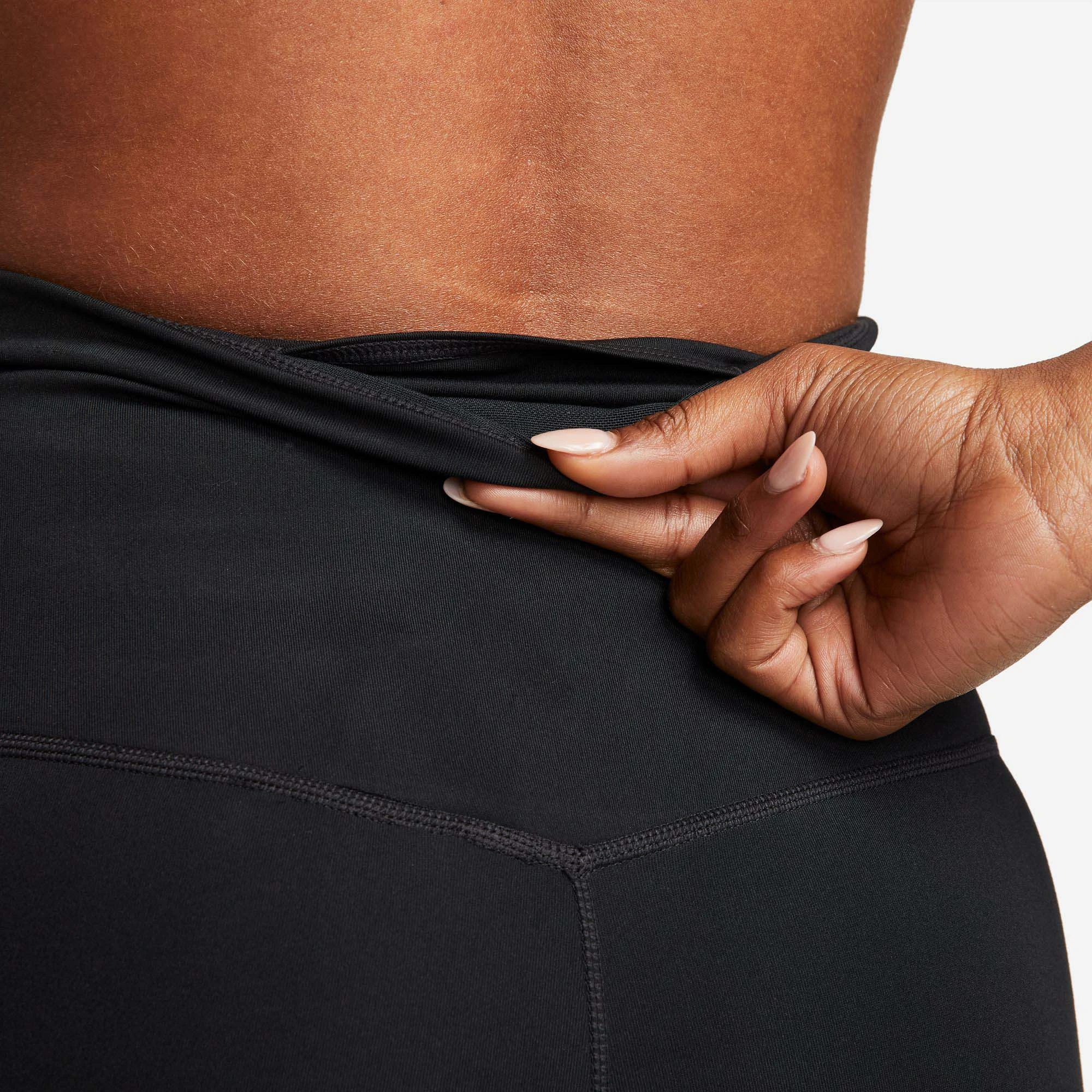 The flexible fabric used in the Nike Women’s One Dri-FIT High-Rise Leggings caters to any body shape comfortably. The high rise waistband combined with a rear V shaped contour holds the lower body in place and provides a flattering silhouette.