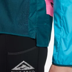Stay shielded from the elements in the Nike Shield Trail Running Jacket. This windproof and water resistant jacket is perfect for off road running in unpredictable conditions. The packable design can easily be carried and is made using lightweight Nike Shield fabric. Zippered utility pockets offer plenty of storage, with the large back pocket designed to pack the jacket into. An adjustable hood gives a secure fit for windy wet days.