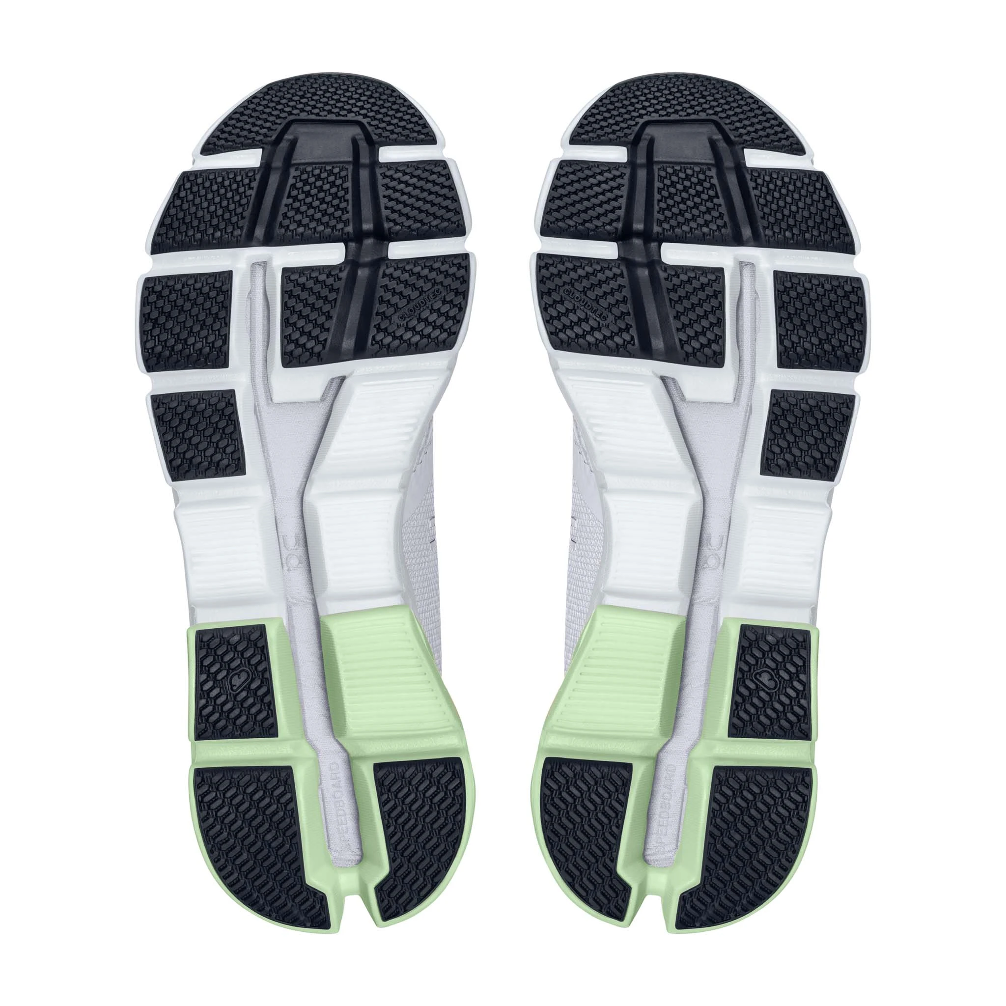 Advice for Road Runners: The Cloudflyer from On Running in the Lavender/Meadow colourway delivers stability and control to your runs in a lightweight and non-intrusive manner. Helion superfoam makes up the full midsole of the shoe. This provides lots of cushioning plus energy return and will feel softer than the previous model. The heel base and cloud cushioning is also wider for more stability. Despite this being well cushioned, the Speedboard delivers a snappy feel. It will therefore feel good while picking up the pace.