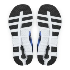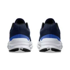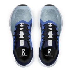 Advice for Road Runners: The On Women’s Cloudrunner Running Shoes in the Chambray/Midnight colourway deliver a soft and supportive ride, with stability enhanced by a broader base than other On models.