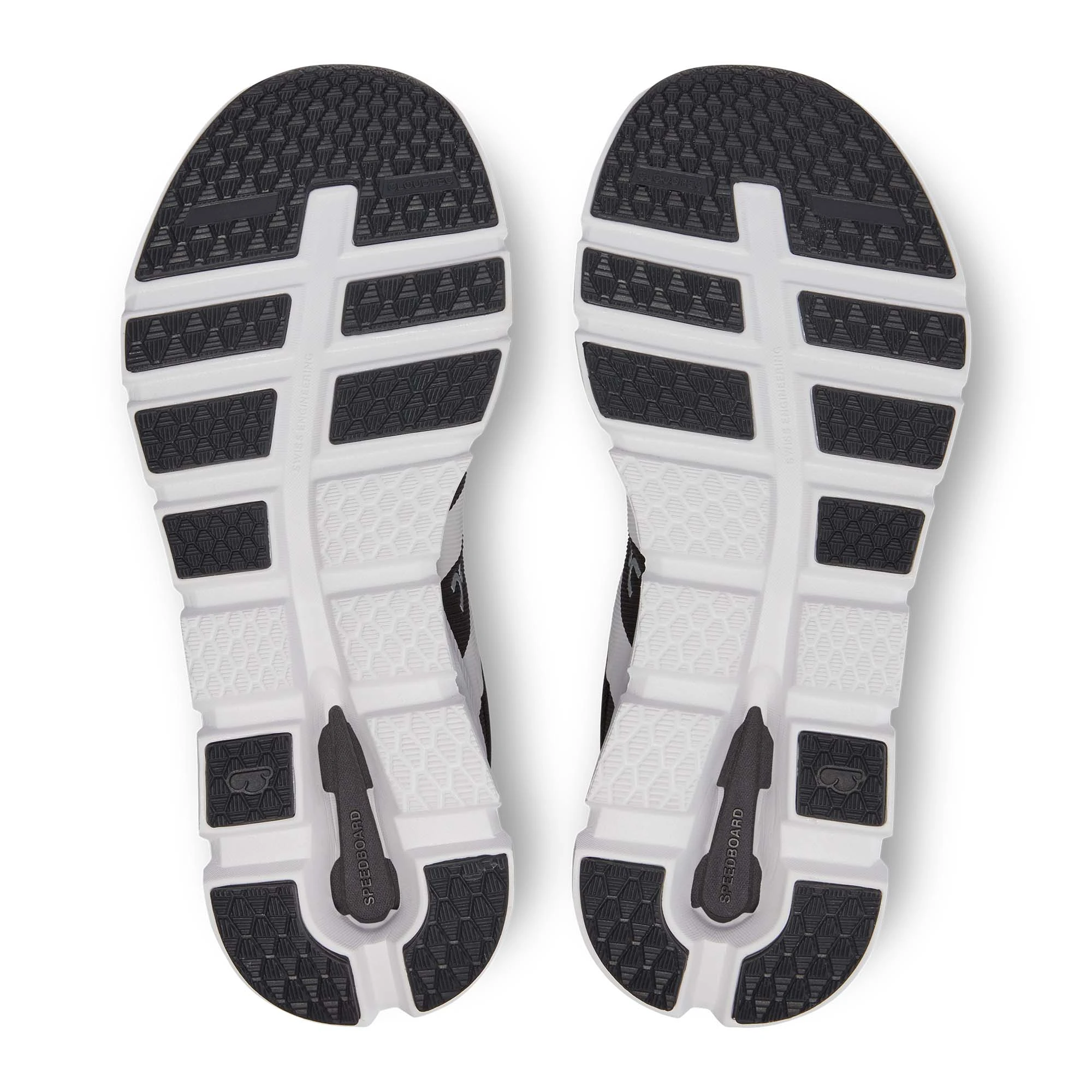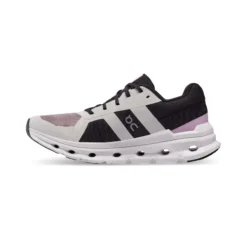 Advice for Road Runners: The On Women’s Cloudrunner Running Shoes in the Heron/Black colourway deliver a soft and supportive ride, with stability enhanced by a broader base than other On models.
