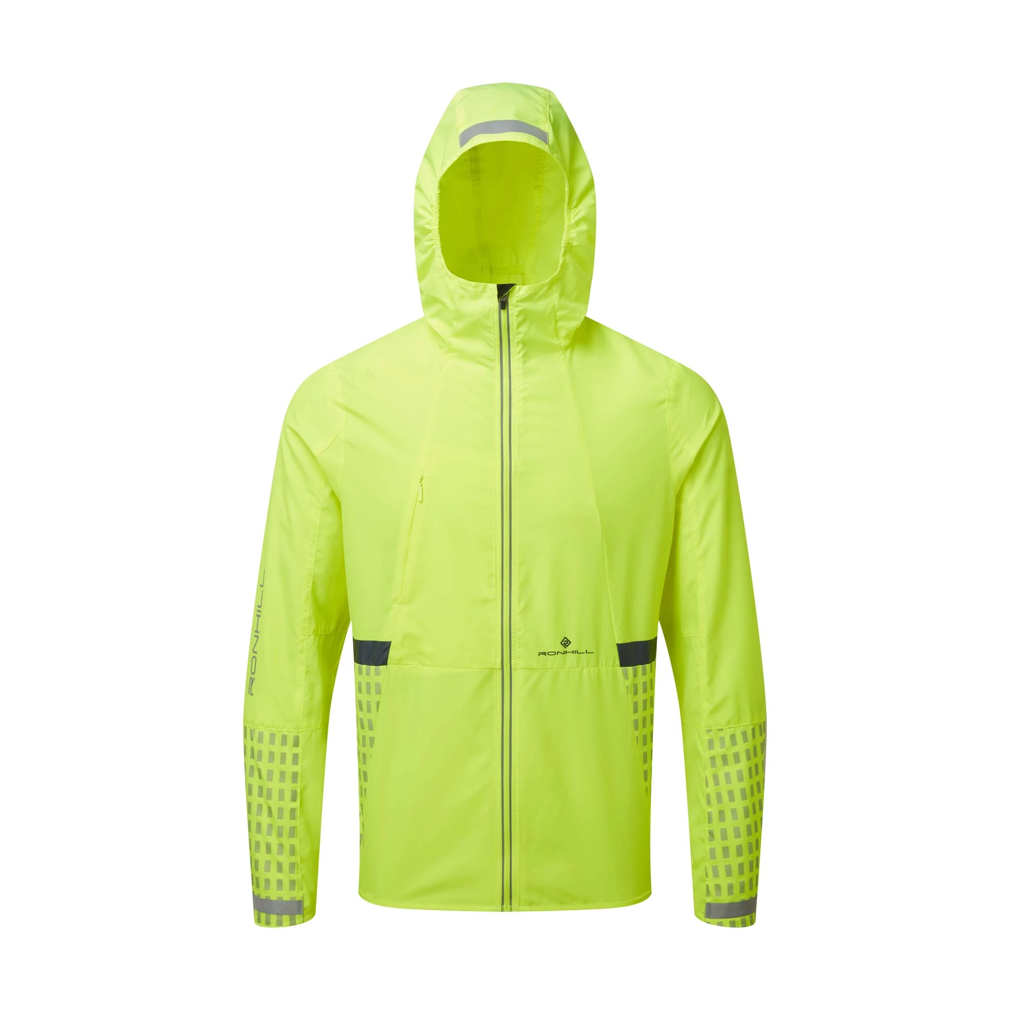 The Ronhill Men’s Tech Afterhours Running Jacket in the Fluo Yellow/Charcoal/Reflect colourway uses carefully placed reflective strips in high movement zones to keep you seen in the dark. The fluorescent yellow colour of this jacket adds an extra layer of visibility to the litany of reflective strips already included. The chest zip pocket is large enough to hold all of your essentials bounce free.
