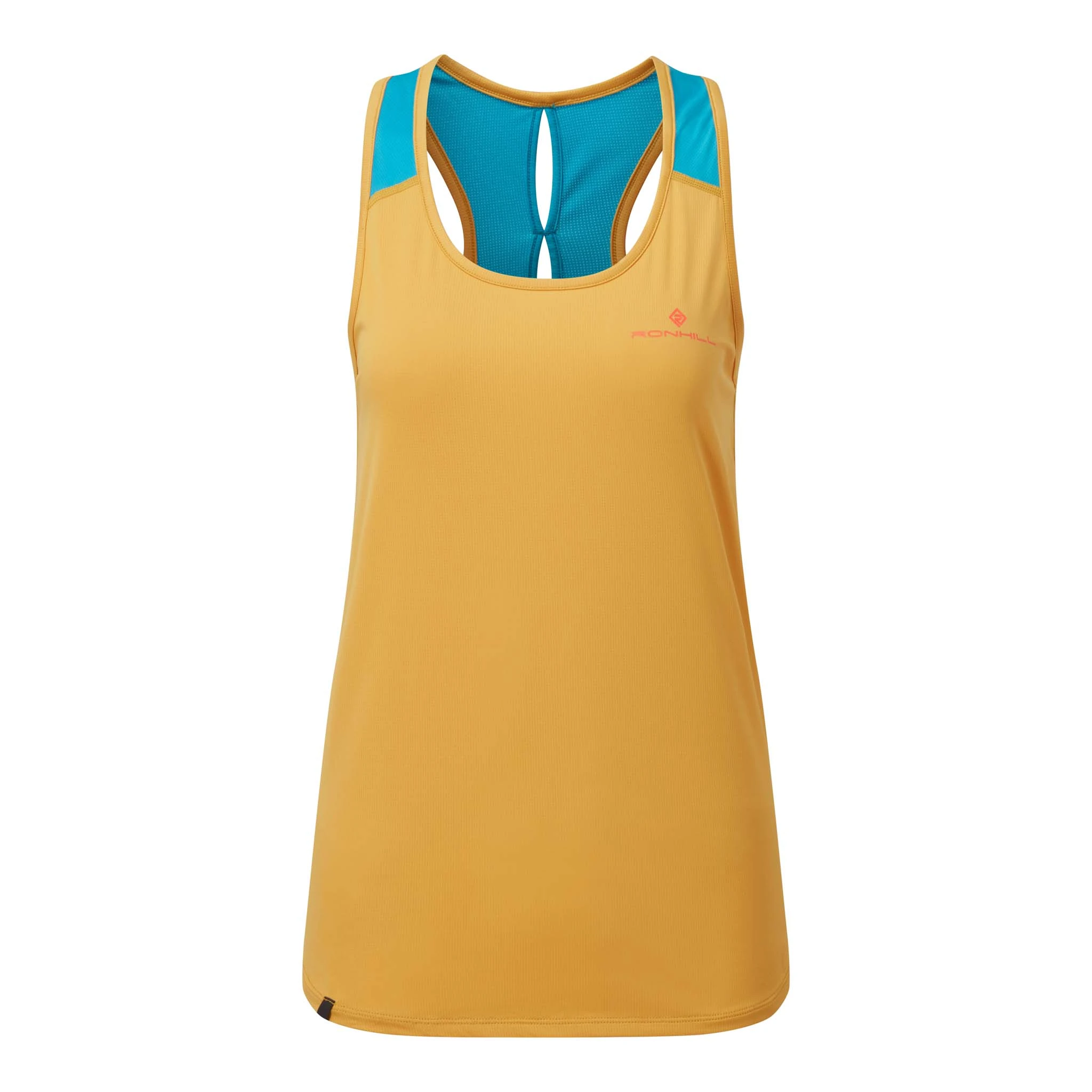 The eco-conscious Ronhill Tech Revive Racer Vest in the Dark Gold/Azure colourway is great for training or racing in warm or humid conditions. Streamlined and lightweight, this technical running vest won’t weigh you down when you’re pushing the pace. The racer back style gives you the ultimate freedom of movement and you’ll feel completely unrestricted when running.