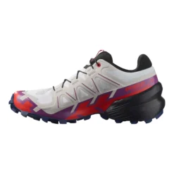 Advice for Trail Runners: The Salomon Women’s Speedcross 6 Running Shoes in the White/Sparkling Grape/Fiery Red colourway is a stunning shoe! With a redesigned and lighter upper, this shoe offers outstanding grip, whatever the terrain or conditions. If you want an incredibly versatile shoe which performs on any trail, Salomon are sure that this is the shoe for you!