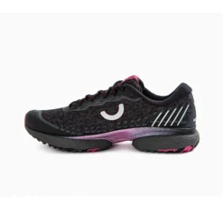 Advice for Road Runners: The True Motion Women’s U-Tech Nevos Elements Running Shoes in the Black/Malaga/Blackened Pearl colourway are a weather-resistant version of True Motion’s signature model.